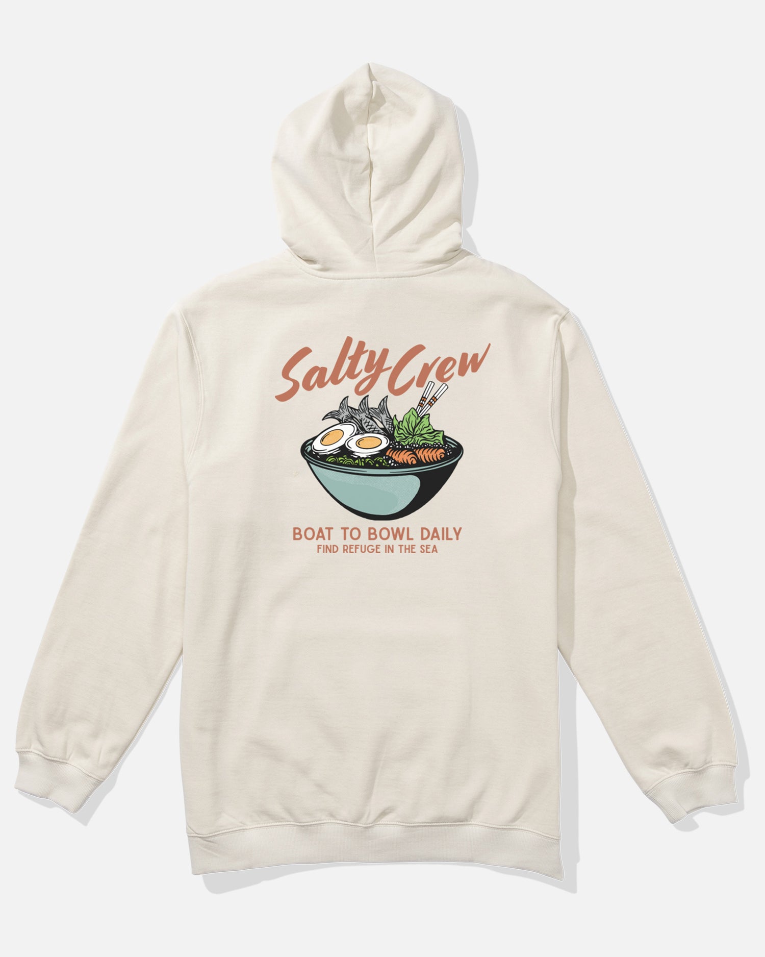 This Fish Bowl Hooded Fleece in Moonbeam blends 80% cotton and 20% polyester for optimal comfort and durability with a substantial 320gsm weight. Featuring a kangaroo pocket and adjustable drawcord hood, it offers practical warmth and storage. The screenprinted designs on the front, back, and sleeves add distinctive style while maintaining expert craftsmanship.